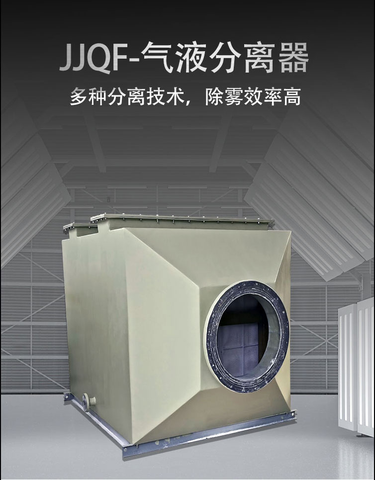 氣液分離器是用于工業(yè)含液系統(tǒng)中將氣體和液體分離的設(shè)備,主要是有波形葉片、板片、填料、絲網(wǎng)、卡條等固定裝置組成,在濕法吸收塔運行過程中,易產(chǎn)生粒徑為10–60微米的“霧”,“霧” 不僅含有水分,它還溶有硫酸、硫酸鹽、二氧化硫等,同時也造成風機、熱交換器、干式吸附塔及煙道的玷污和嚴重腐蝕,因此,濕法廢氣處理工藝上對吸收設(shè)備提出除霧的要求,被凈化的氣體在離開吸收塔之后要用氣液分離器除霧。我公司最新研制的JJQF型氣液分離器,吸取了傳統(tǒng)氣液分離器的優(yōu)點,并采用了旋轉(zhuǎn)分離元件和破沫器分離元件,從而達到高效率分離和徹底分離的目的。